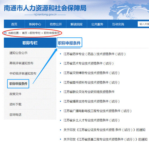 其余系列专业评审申报条件均可登录“南通市人社局官网”: