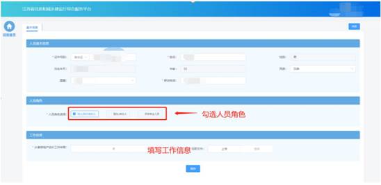 在“人员角色”板块勾选人员对应的角色,并填写角色对应的工作信息、