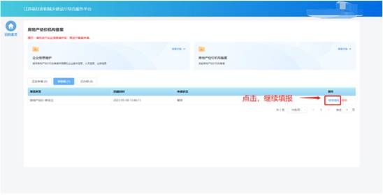 列表记录中的“继续填报”可进入申请页面继续填报。