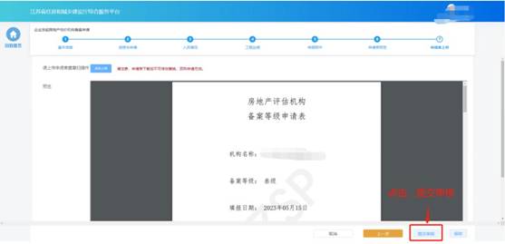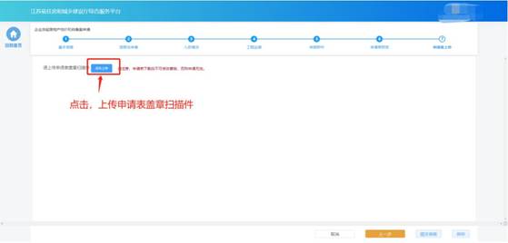 在“申请表上传”页面点击“点击上传”按钮,可上传申请表盖章扫描件,上传成功后,页面下方会展示盖章扫描件内容。确认无误后,点击