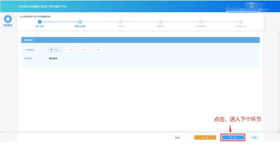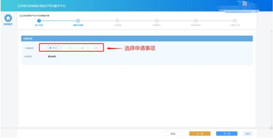 完成事项和资质选择后,点击“下一步”进入下个环节。