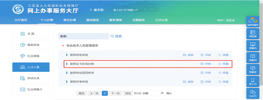 现将“江苏人社网办大厅”职称证书在线补发、换发问题通知如下: