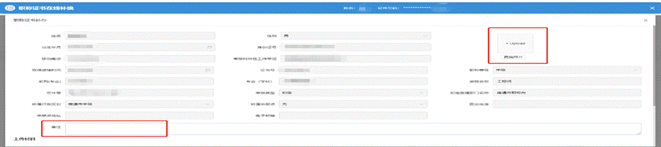 (2)页面中上传照片,在备注中填写对职称证书有异议的情况,点击提交申请,等待人社部门审核即可。