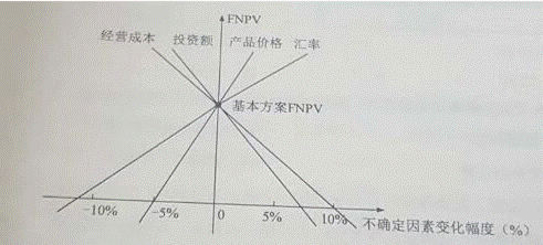 3.对某技术方案的财务净现值(FNPV)进行单因素敏感性分析,投资额、产品价格、经营成本以及汇率四个因素的敏感性分析如下图所示,则对财务净现值指标来说最敏感的因素是()。