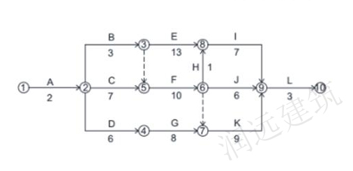 1.关键线路为:A→C→F→H→|→L。
