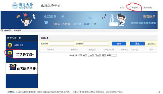 4.点击页面右上方“订单查询”-----页面左侧“二学历学费”----右侧“去结算”---选择“支付宝”或“微信”---点击右下方“立即支付”----手机扫描二维码,在手机端完成支付。