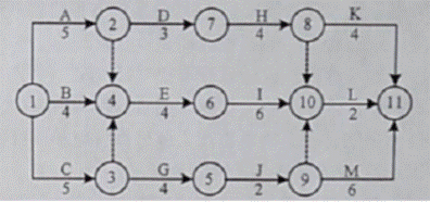 13.某双代号网络计划如下图,关健线路有()条。