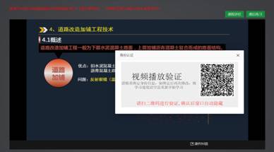 用户播放视频时会随机弹出播放验证页面,用户扫码后在手机端出现继续教育身份认证页面,点击【确认】按钮完成验证,验证成功后可以继续播放视频。