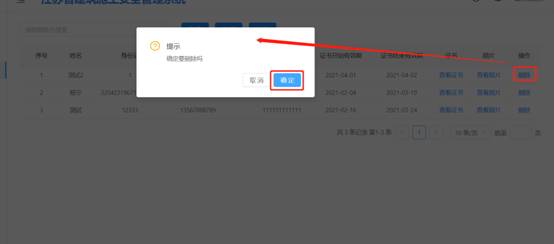 人员离开本单位时,检验检测机构应及时删除人员信息。点击【删除】按钮【确定】删除。