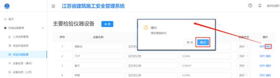 3.在仪器列表中,点击删除键后会弹出提示框,再点击【确认】按钮后即可删除。
