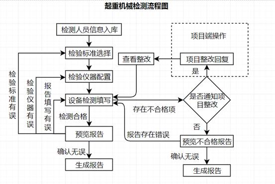 注:设备未检测时操作栏只显示【检测】按钮;设备检测填写完成并未通知项目部进行整改,操作栏显示【检测】和【预览报告】按钮;检测填写完成后并通知项目部进行整改,操作栏显示【检测】、【预览报告】和【查看整改】按钮。